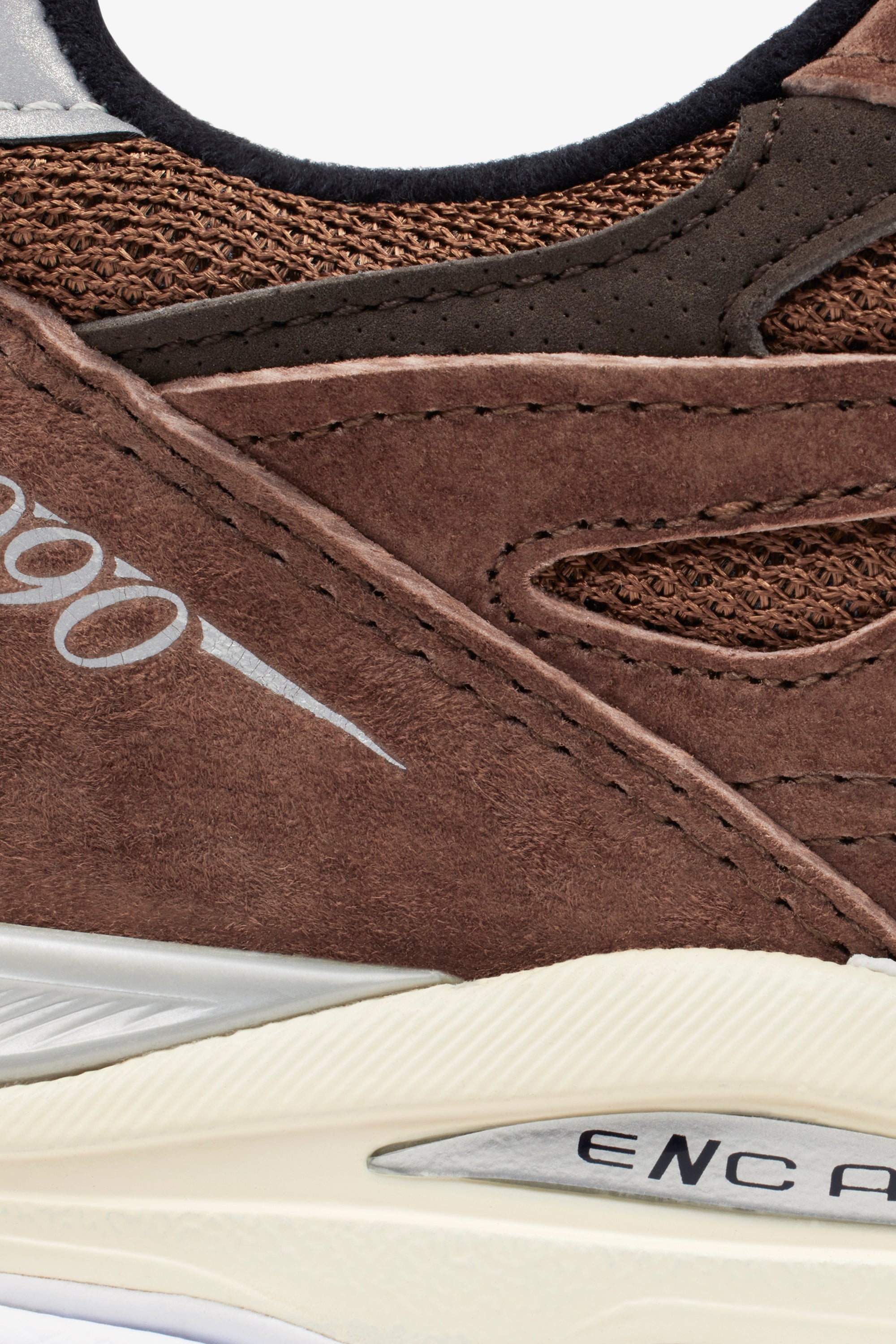 By employing a tonal brown, applied across the subtle textural contrast of a nubuck overlaid mesh upper, the shoe aims to highlight the laborious attention to detail of New Balance’s MADE construction and the precision engineering of the 990’s performance legacy.